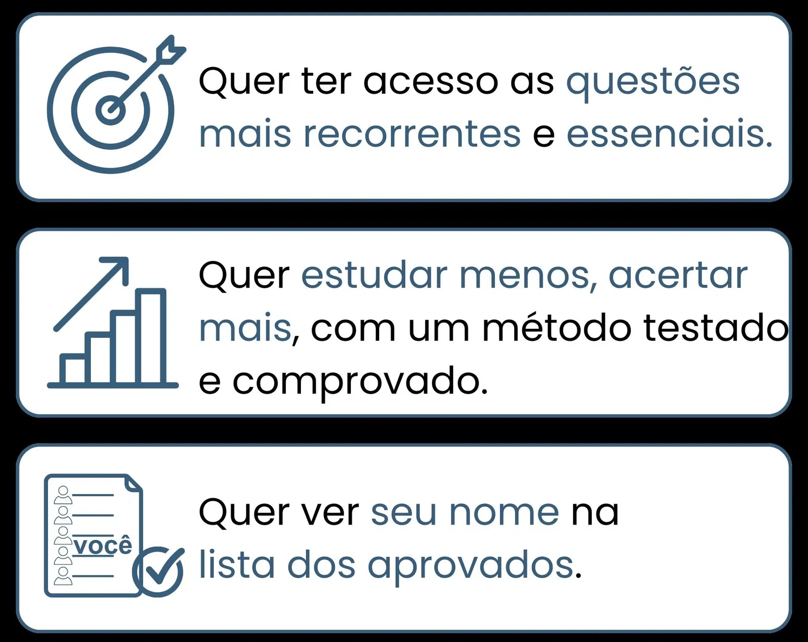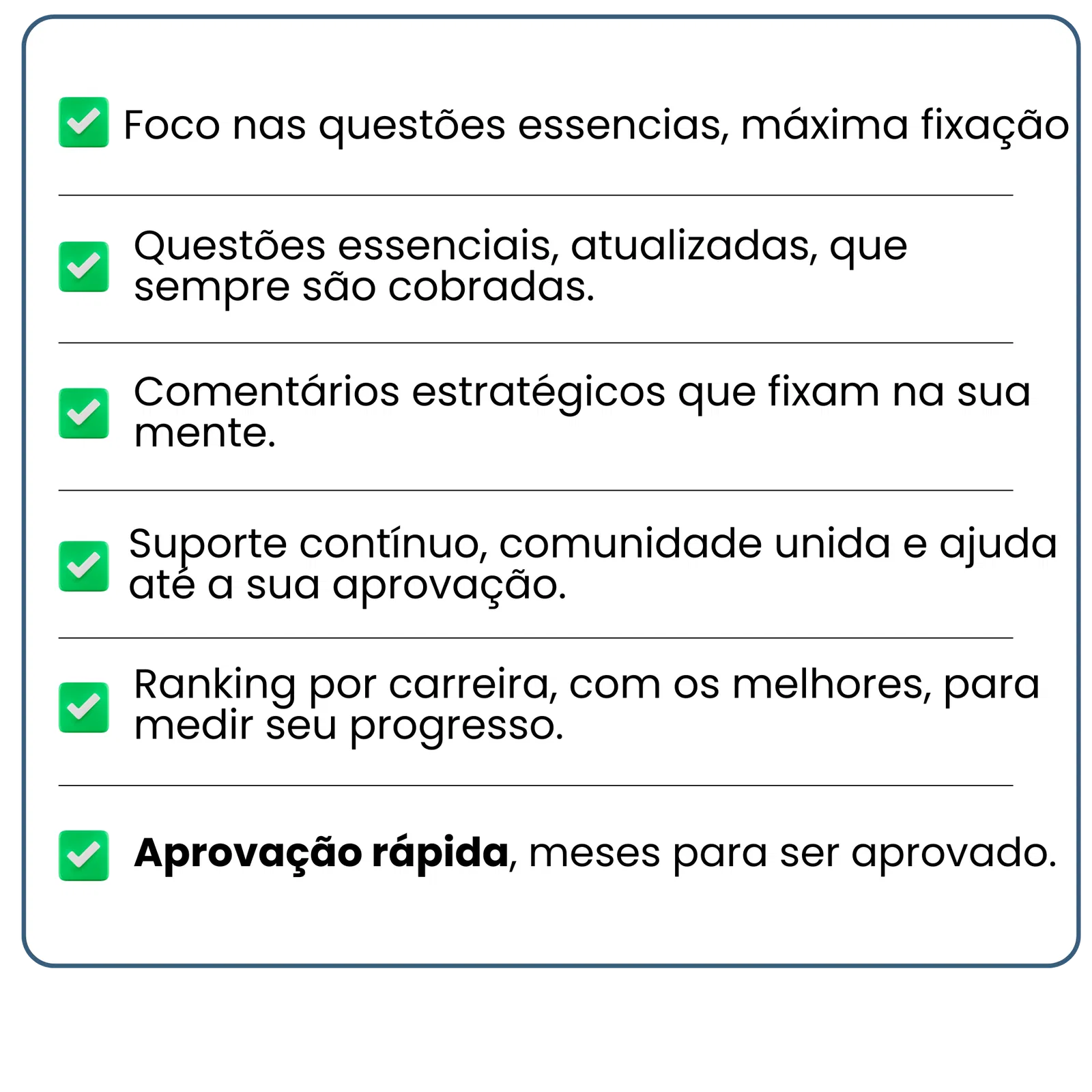 Em uma semanas praticando, você já percebe sua evolução. Quanto maior for a sua dedicação, mais rápido será sua aprovação. Quem pratica 30 questões essenciais por dia, vai estar apto e ser aprovado muito mais rápido do que quem pratica 10 por dia. O método é comprovado e validado.